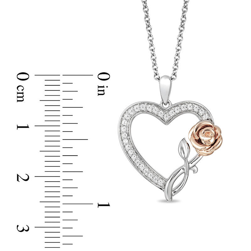 - Enchanted Disney Belle 1/6 CT. T.W. Diamond Rose and Heart Pendant in Sterling Silver and 10K Rose Gold - 19"