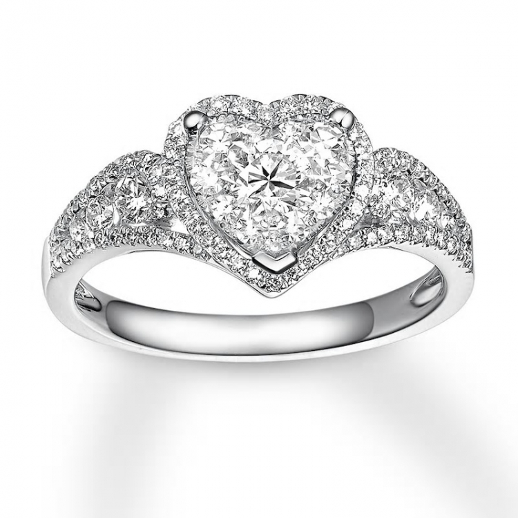 Diamond Heart Ring 3/4 Carat tw 14K White Gold