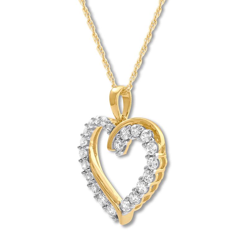 Diamond Heart Necklace 1 ct tw Round-cut 14K Yellow Gold