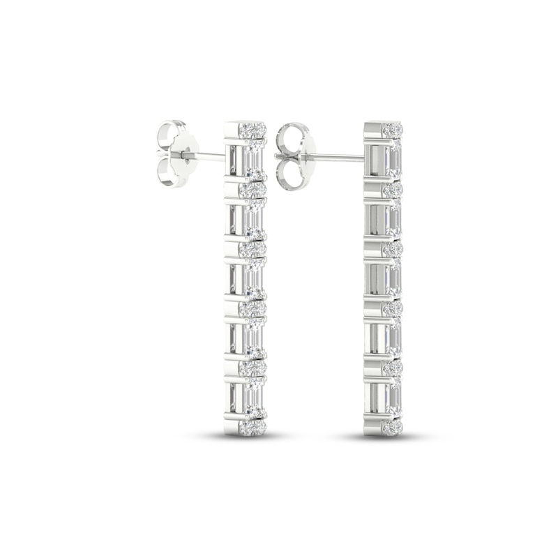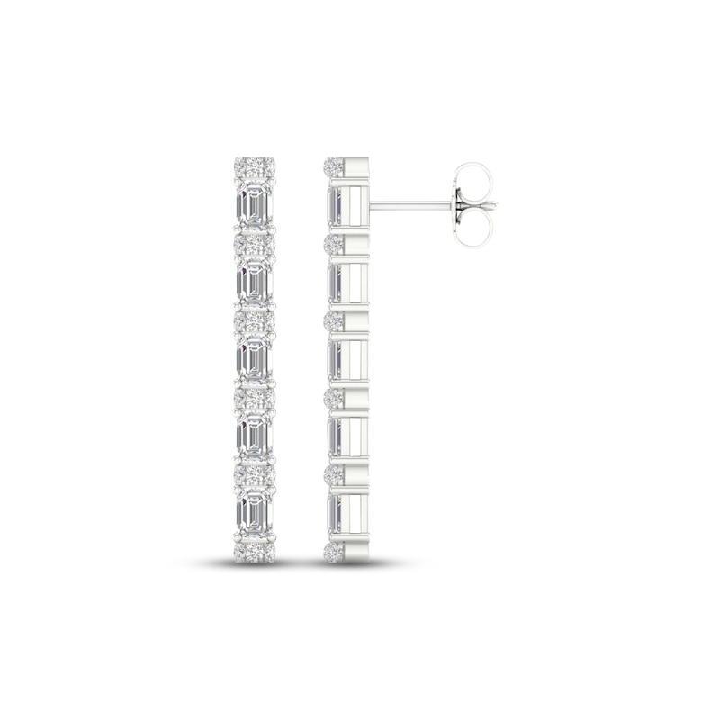 Breathtaking emerald-cut diamonds drip down these alluring drop earrings for her, alternating with glittering clusters of round-cut diamonds. Fashioned in iconic 14K white gold, the diamonds total 2 3/4 carats in weight. The earrings secure with friction backs.