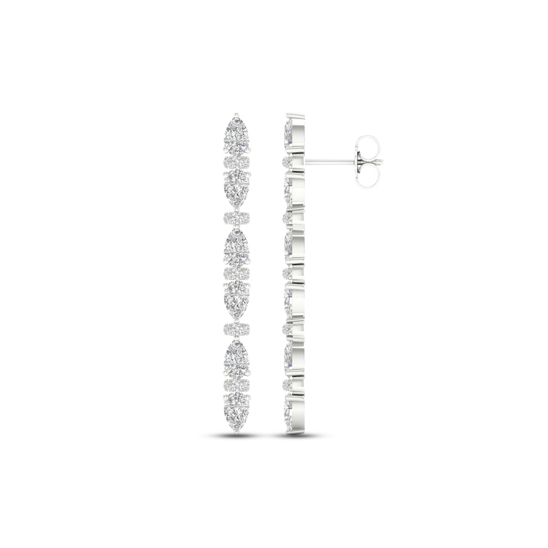Radiant with eye-catching sparkle, these incredible drop earrings feature shimmering pear-shaped diamonds alternating with clusters of round diamonds. Fashioned in 14K white gold, the earrings have a total diamond weight of 2 carats and secure with friction backs.