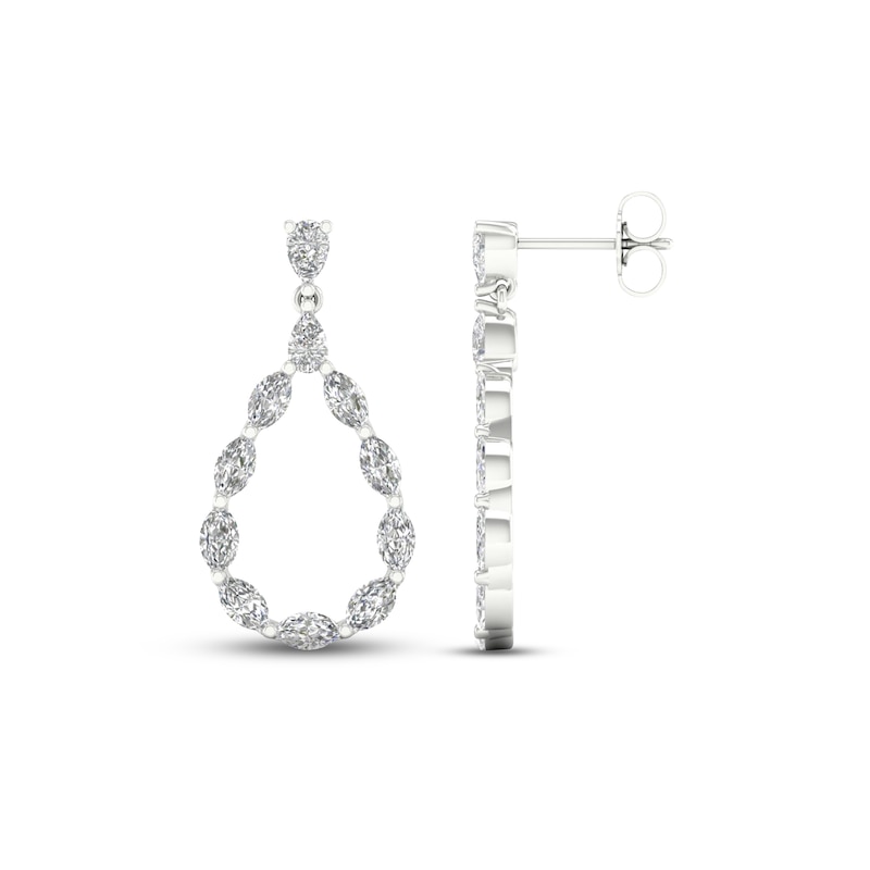 - Diamond Teardrop Earrings 2 ct tw Marquise & Pear-Shaped White Gold Plated