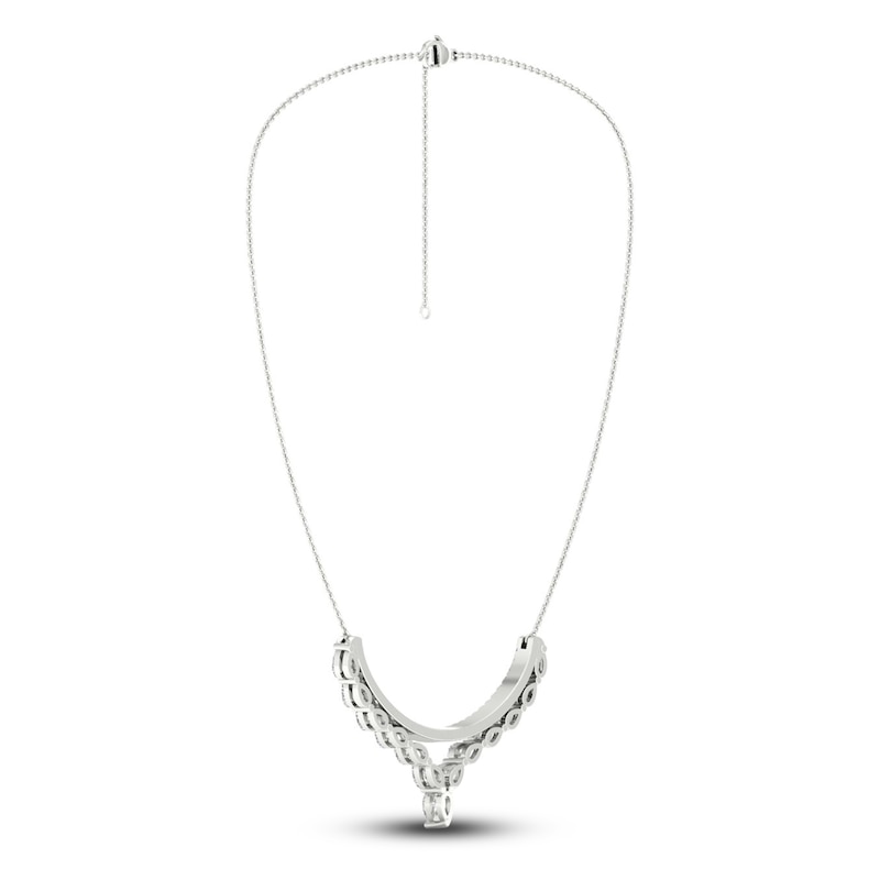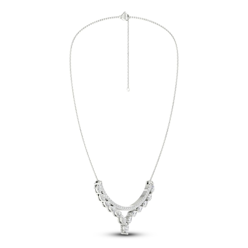 - Diamond Double Row V Necklace 2 ct tw Pear & Round-cut White Gold Plated