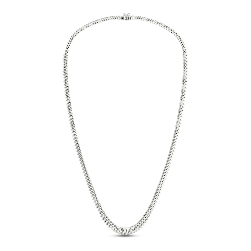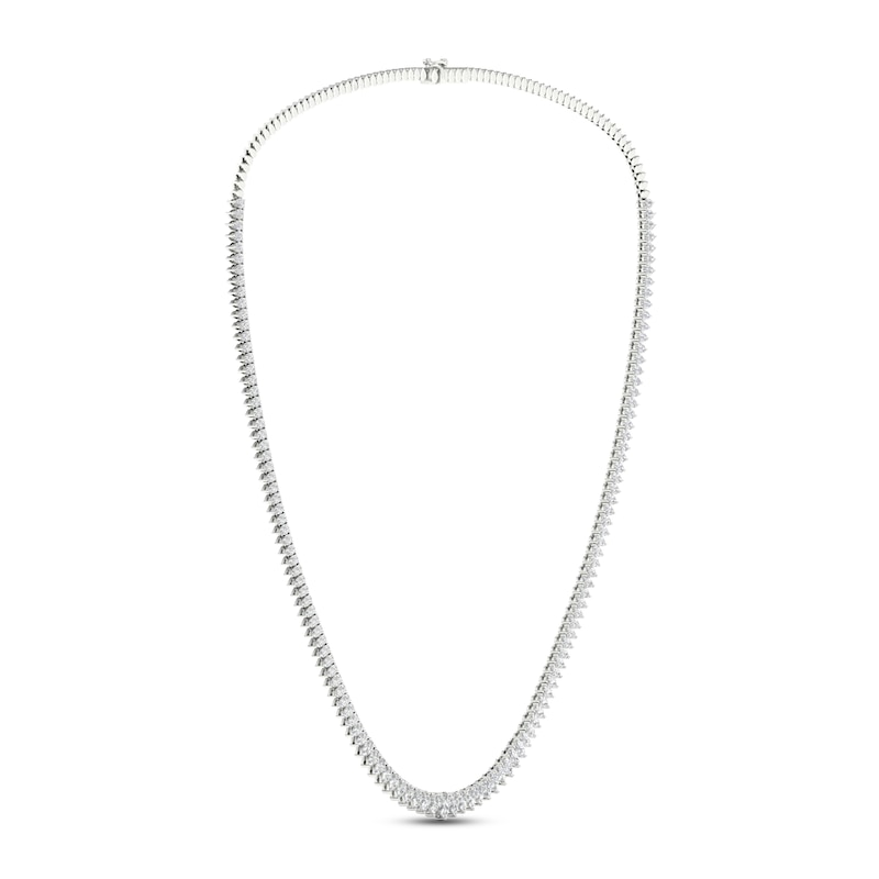 A host of graduating pear-shaped diamonds line this sparkling and sophisticated Riviera necklace, crafted in 14K white gold. With a total diamond weight of 7 carats, the 18-inch necklace secures with a snap-lock clasp.