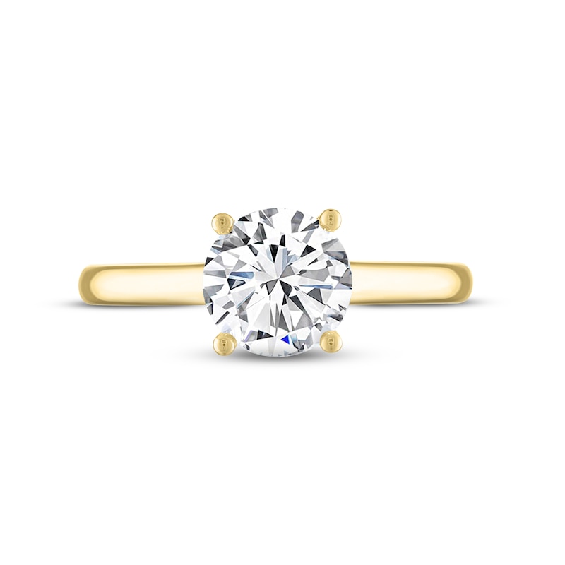 Introducing THE LEO® Legacy Lab-Created Diamond, which features additional facets that are strategically placed onto the lab-created diamond, maximizing the return of light and creating far away sparkle. This captivating solitaire engagement ring displays a 1 1/2-carat round lab-created diamond that is independently certified and set in 14K yellow gold. The ring has a total lab-created diamond weight of 1 1/2 carats. The unique laser-inscribed Gemscribe® serial number ensures your peace of mind.
