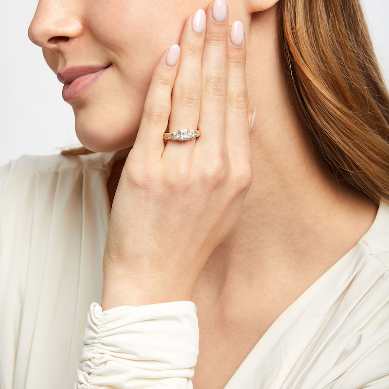 - Three-Stone Diamond Engagement Ring 1 ct tw Princess/Round Yellow Gold Plated
