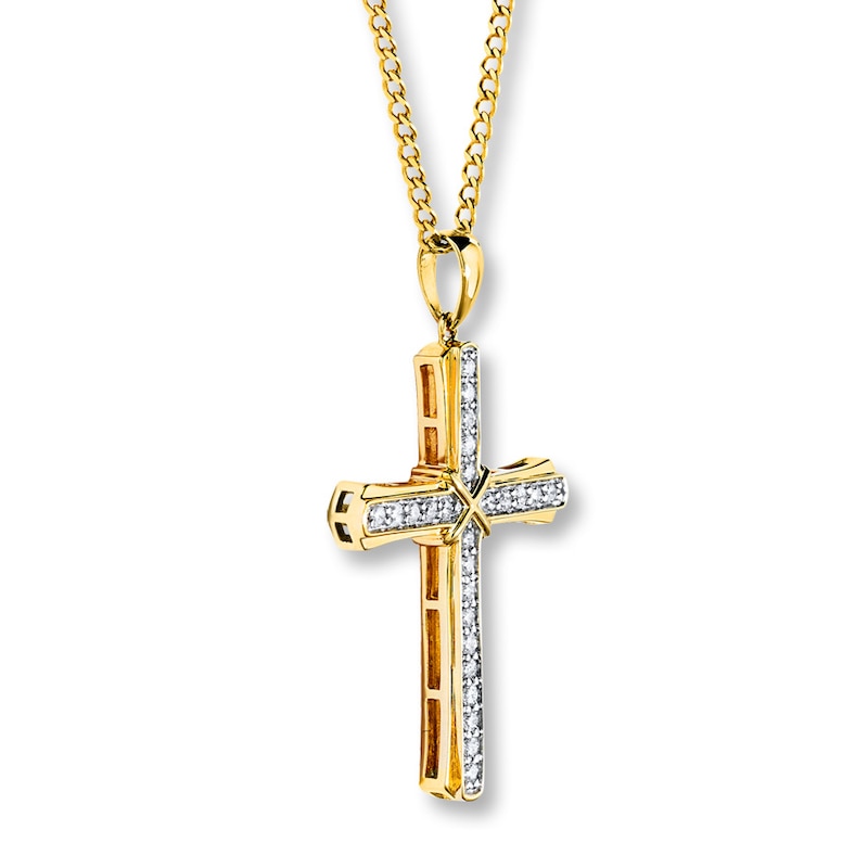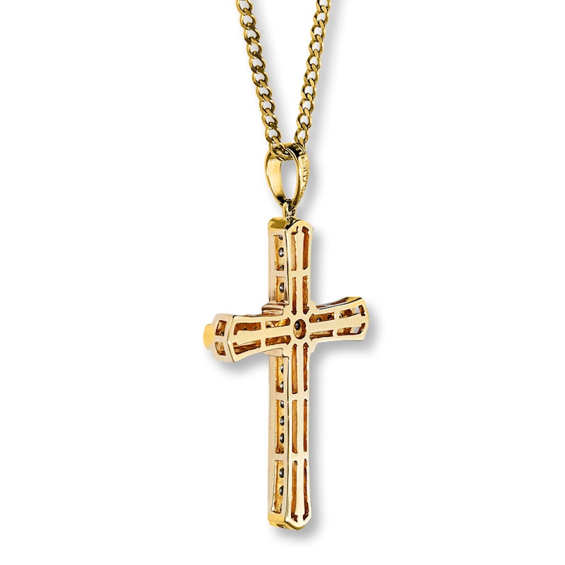 - Men's Cross Necklace 1/2 ct tw Diamonds Yellow Gold Plated