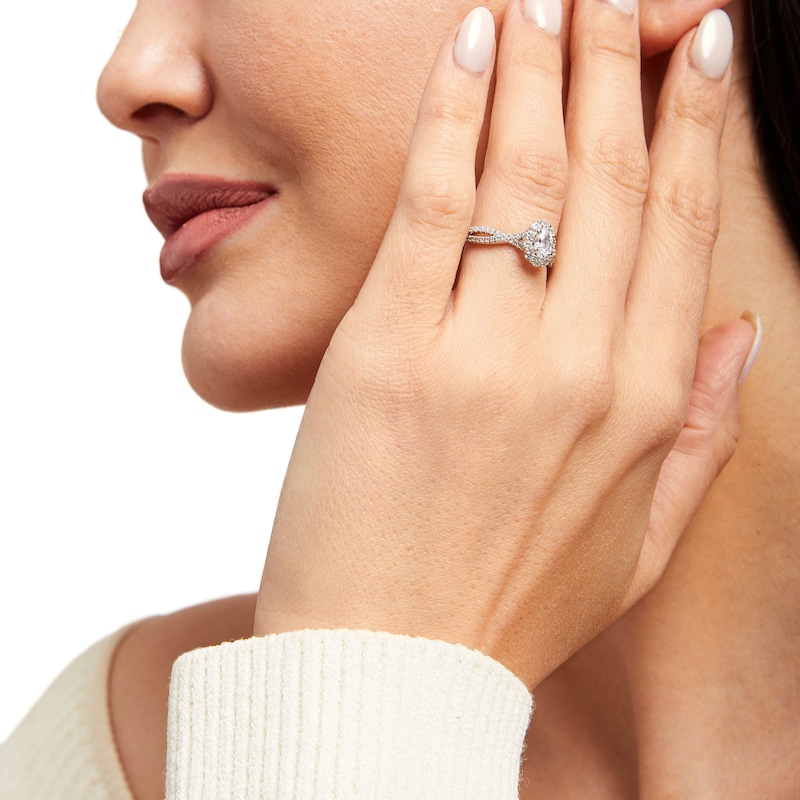 - THE LEO First Light Diamond Engagement Ring 1 ct tw Oval & Round-cut White Gold Plated