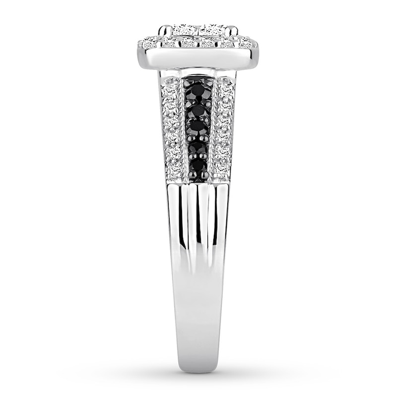 Stunning style and dramatic design come together with this beautiful engagement ring, crafted of 14K white gold. The ring features four princess-cut diamonds at the center for one spectacular look. Round black diamonds elegantly contrast white diamonds along the band. From the Now & Forever® Bridal Collection.