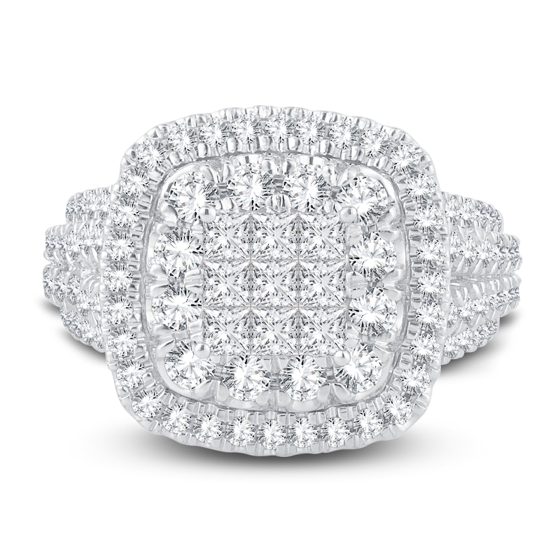- Diamond Engagement Ring 1-7/8 ct tw Princess & Round-Cut White Gold Plated