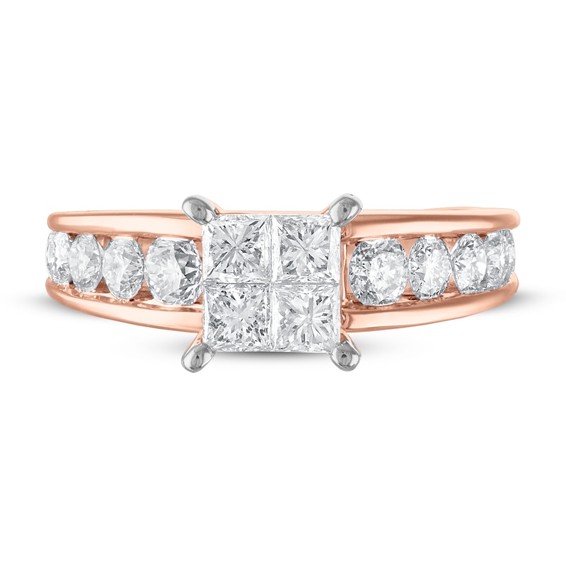 - Diamond Engagement Ring 1-7/8 ct tw Princess & Round Rose Gold Plated