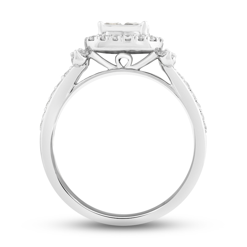 - Diamond Engagement Ring 7/8 ct tw Princess & Round-Cut White Gold Plated