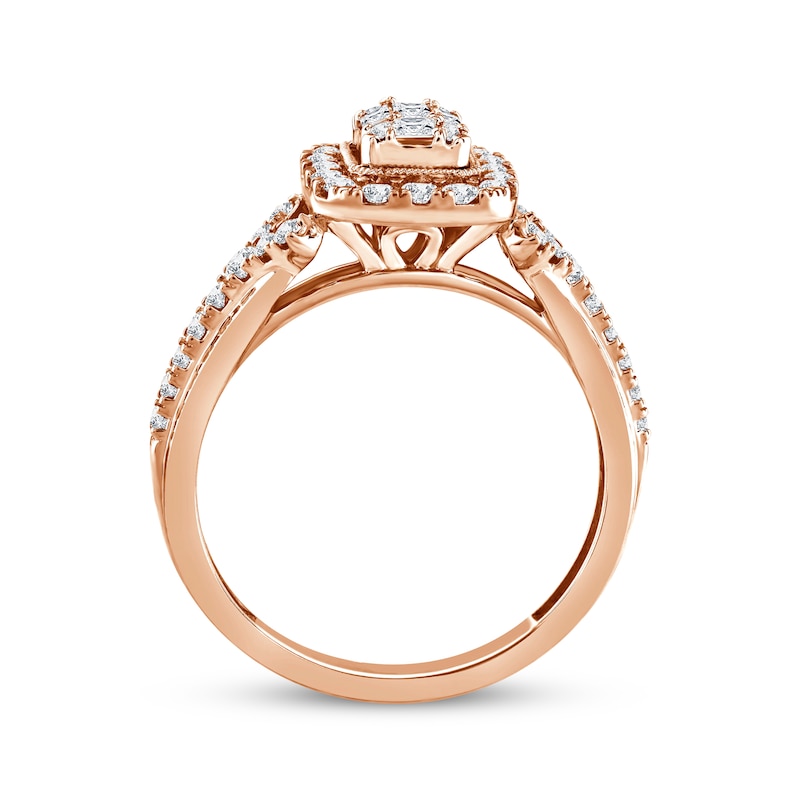 - Multi-Diamond Center Elongated Cushion Frame Engagement Ring 5/8 ct tw Rose Gold Plated