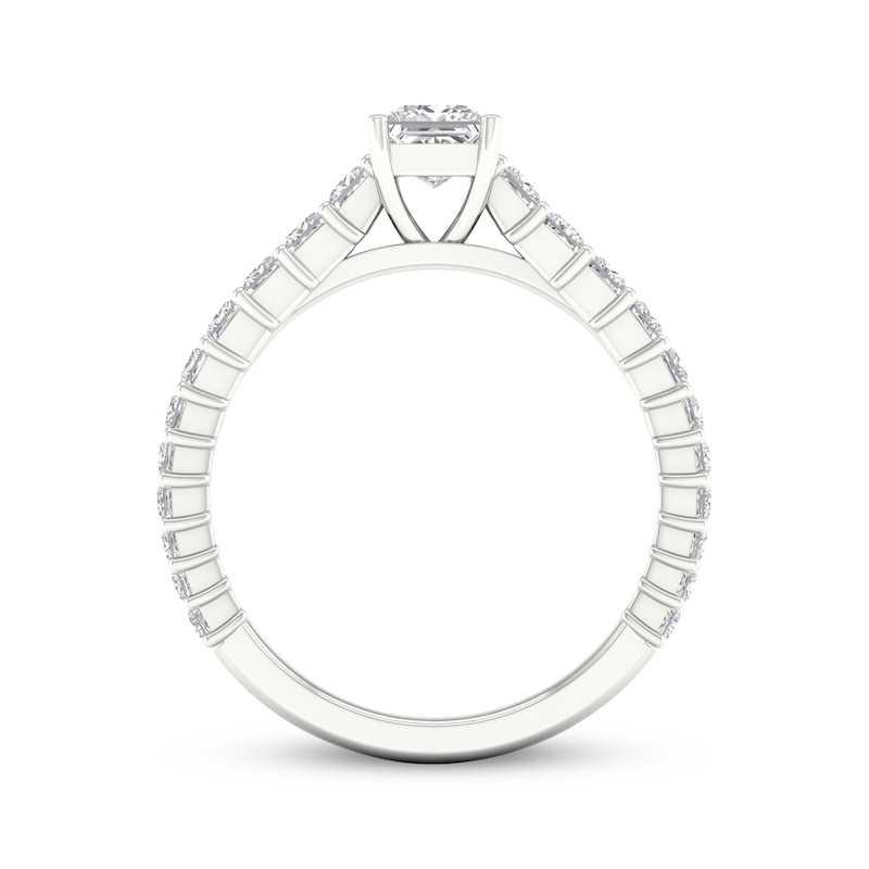 A timeless look, this engagement ring is a romantic choice. Fashioned in 14K white gold, this elegant design features a 1/2 carat princess-cut diamond solitaire flanked by princess-cut diamonds along the shank for a total diamond weight of 1 1/3 carats. From the Now & Forever® bridal collection.
