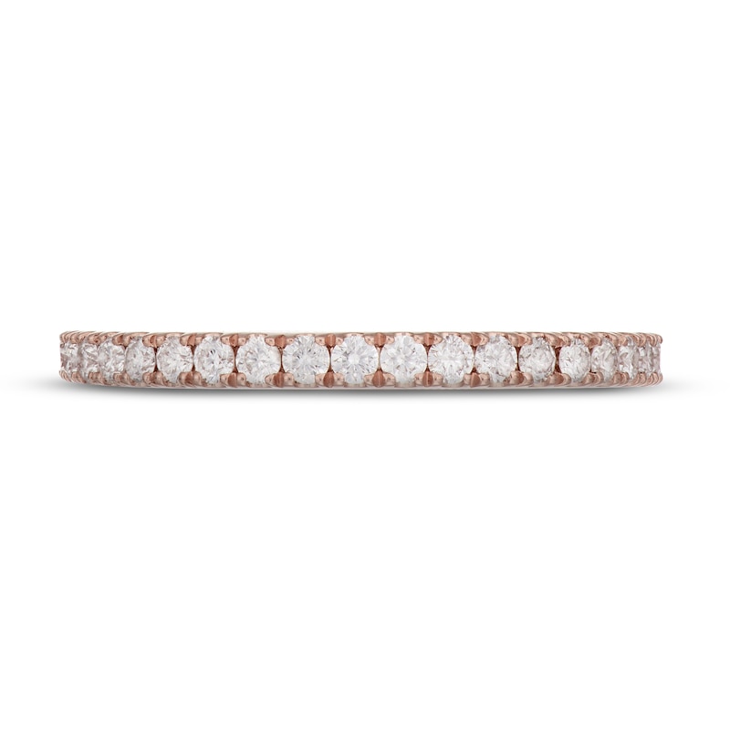 A twinkling array of round diamonds sparkles along this enchanting wedding band for her. The band is designed to fit alongside her matching Neil Lane™ engagement ring (sold separately). The ring is crafted in romantic 14K rose gold and has a total diamond weight of 3/8 carat. From the Neil Lane Bridal® collection.