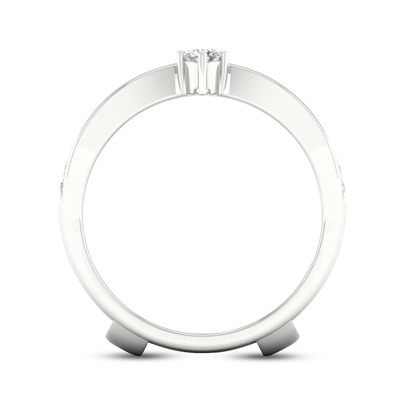 Give her diamond solitaire (sold separately) a regal update with this enhancer ring. Crafted in 14K white gold, the design shimmers with a round-cut diamond solitaire and a ribbon of round-cut diamonds on each side. A royal look, this wrap ring has a total diamond weight of 3/8 carat. From the Now & Forever® bridal collection.