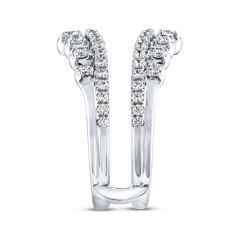 Two dazzling rows of round diamonds crest above and below the space for her THE LEO Diamond® solitaire (sold separately) in this lustrous enhancer ring. With a total diamond weight of 1 carat, the ring is styled in polished 14K white gold.