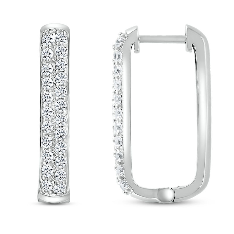 These stylish paperclip-inspired earrings showcase two rows of brilliant round diamonds that shimmer along 10K white gold hoops. The earrings have a total diamond weight of 1 carat and secure with hinged backs.