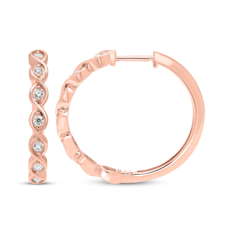 Life isn’t measured in minutes but in moments of love. These hoop earrings celebrate every moment you share—because every moment together is a gift. Each earring features round-cut diamonds surrounded by swirling infinity symbols. Styled in 14K rose gold, these hoops have a total diamond weight of 1/2 carat and secure with hinged backs. From the Every Moment collection, exclusively at KAY.