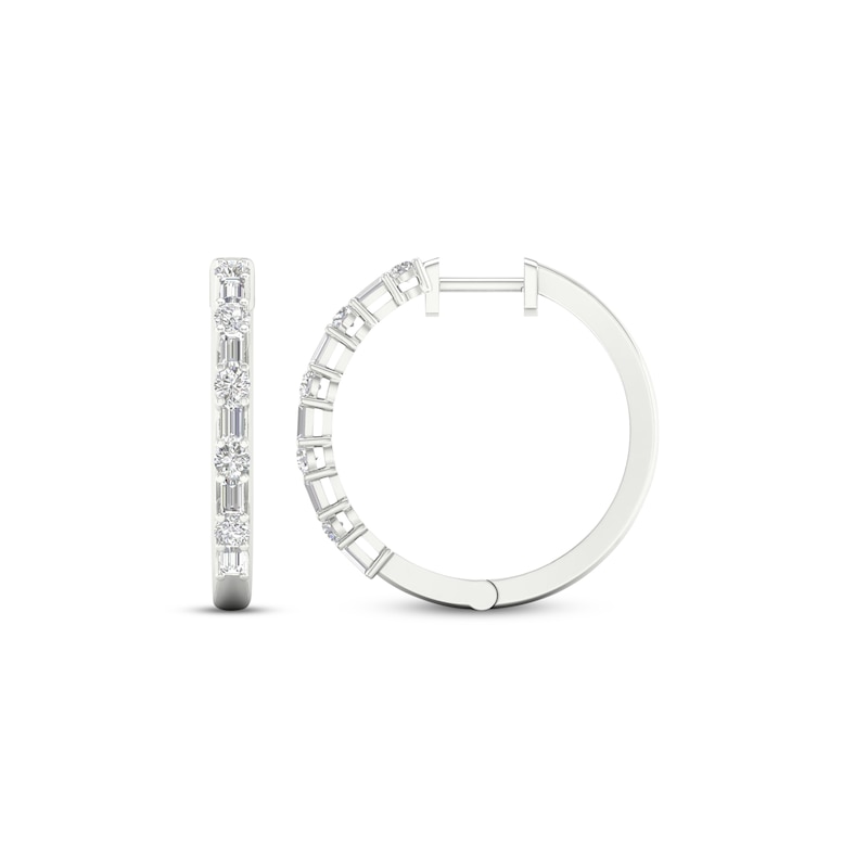 You'll love the mix of lab-created diamond shapes in these anytime hoop earrings.