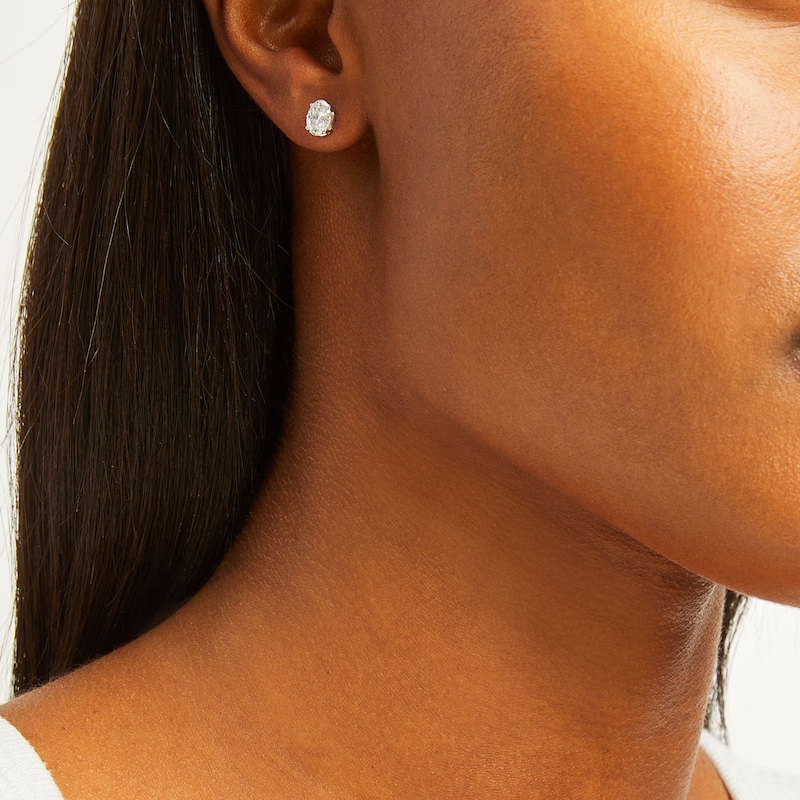 Ready to be adored, these sparkling solitaire earrings showcase exquisite oval-cut lab-created diamonds. Created in 14K white gold with a rhodium finish, these earrings secure safely with screw backs. The earrings have a total lab-created diamond weight of 1 carat and are independently certified. From the Lab-Created Diamonds by KAY collection.