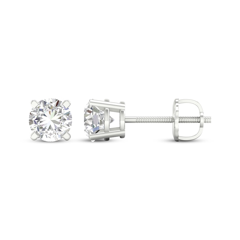 Stunning in their simplicity, these beautiful earrings showcase exquisite round-cut lab-created diamonds. The timeless silhouette is crafted in iconic 14K white gold and safely secures with screw backs. The earrings have a total lab-created diamond weight of 1 1/2 carats and are independently certified. From the Lab-Created Diamonds by KAY collection.