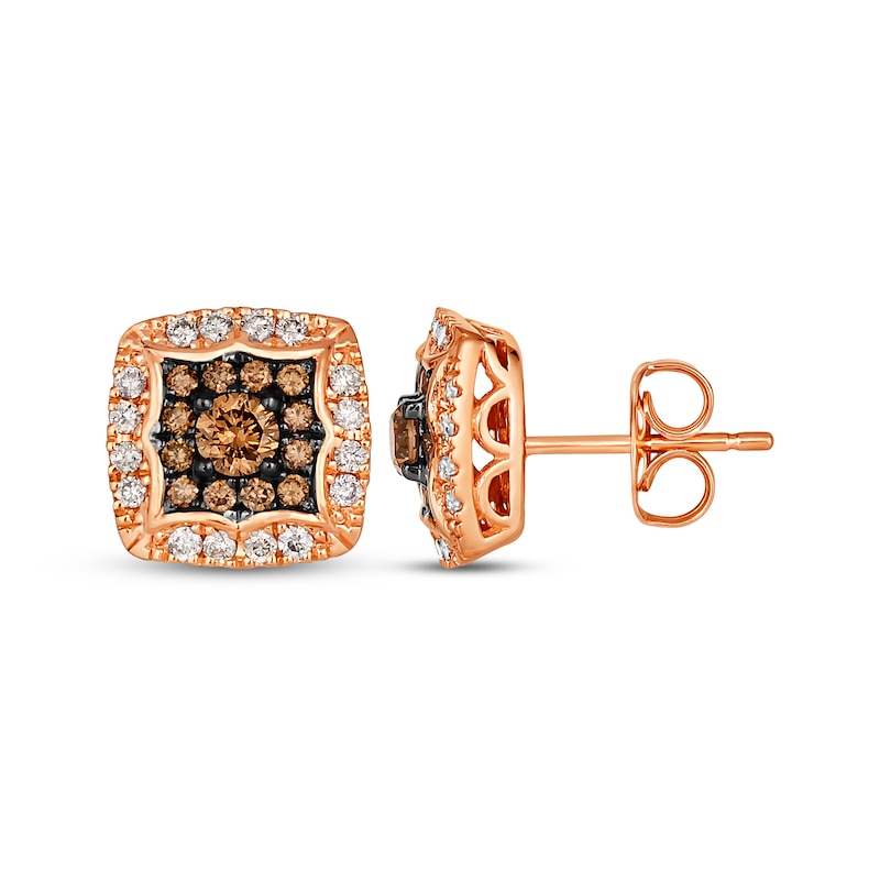 Spice it up with these sparkling stud earrings from Le Vian®. Crafted in 14K Strawberry Gold®, each cushion-shaped earring features round-cut Chocolate Diamonds® wrapped in a scalloped frame of Nude Diamonds™. With a total diamond weight of 5/8 carat, these post earrings secure with friction backs. Le Vian®. Discover the Legend.