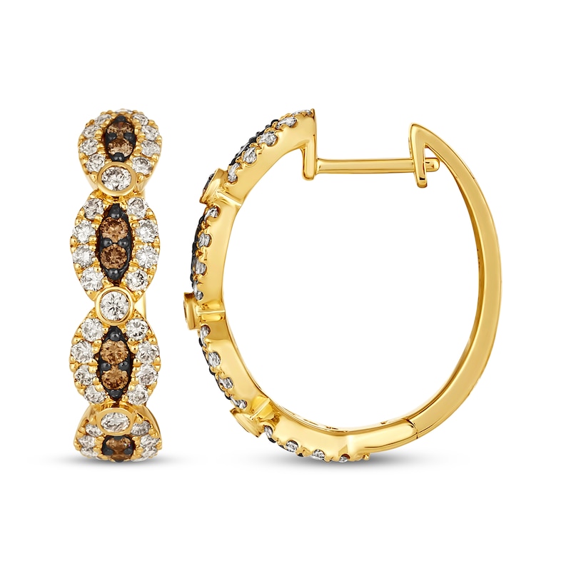 Give her the beauty of these hoop earrings from the Kay-exclusive Le Vian® Chocolate Waterfall™ collection. Crafted in 14K Honey Gold™, each earring features a scalloped pattern of round-cut Nude Diamonds™ and Chocolate Diamonds®. These hoop earrings have a total diamond weight of 7/8 carat and secure with hinged backs. Le Vian®. Discover the Legend.