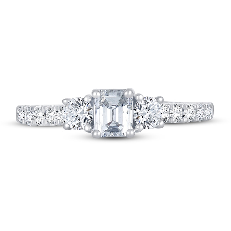 - 3-Stone Diamond Engagement Ring 1 ct tw Emerald & Round White Gold Plated