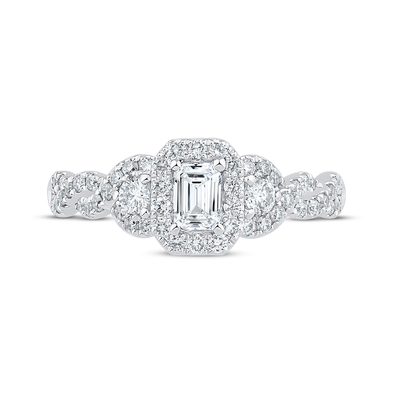 - Emerald-Cut Diamond Halo Engagement Ring 7/8 ct tw White Gold Plated