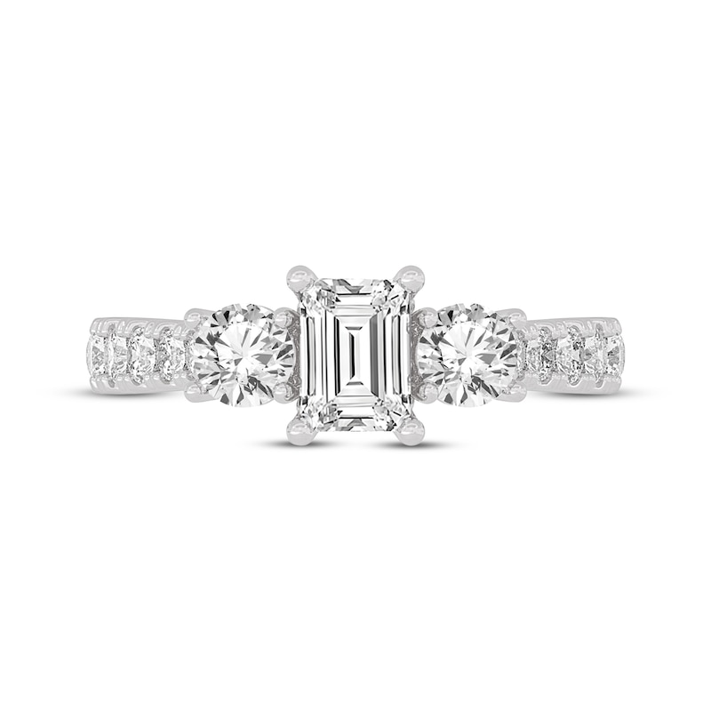 - Emerald & Round-Cut Three-Stone Diamond Engagement Ring 2 ct tw White Gold Plated