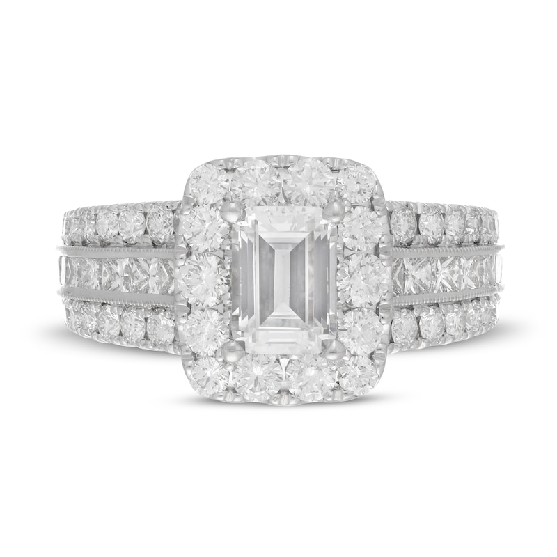 - Neil Lane Engagement Ring 2-7/8 ct tw Emerald, Princess & Round White Gold Plated