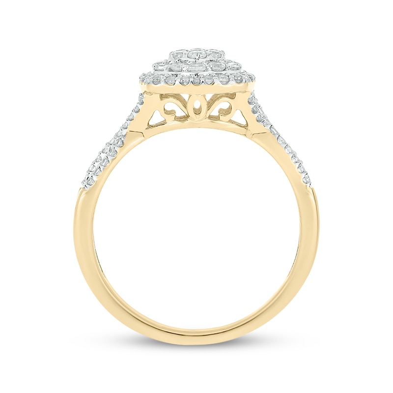 - Baguette & Round-Cut Multi-Diamond Center Cushion-Shaped Engagement Ring 1/2 ct tw Yellow Gold Plated