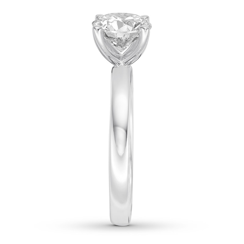 With an independently certified 1-1/2-carat round diamond, this remarkable solitaire ring for her brilliantly declares your love. The band is crafted of polished 14K white gold to complete the timeless design.