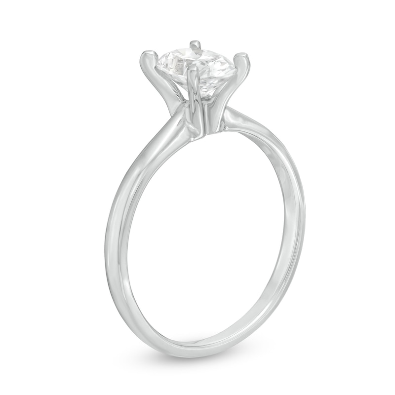 A 1 carat, independently certified oval diamond shines brilliantly in this gorgeous solitaire ring for her. The band is styled in polished 14K white gold.