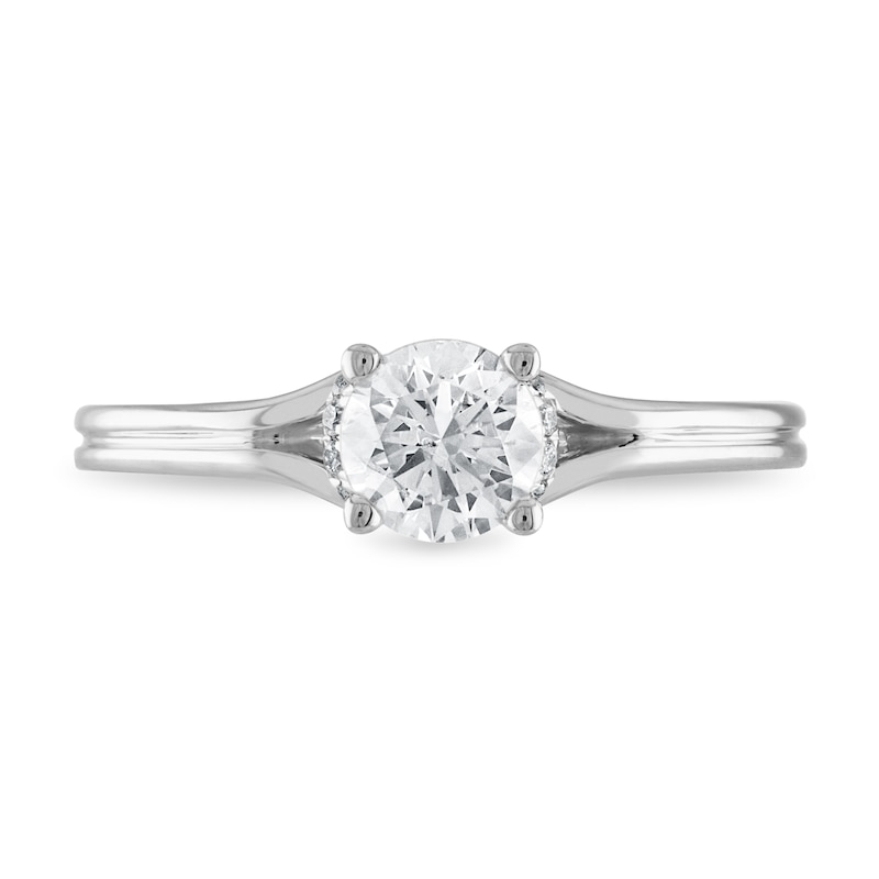 This stunning solitaire engagement ring for her features a chic 3/4 carat round-cut diamond at its center, set in classic 14K white gold. Sparkling diamonds peek out underneath in the hidden gallery and on the sides of the band for a total diamond weight of 1 carat.