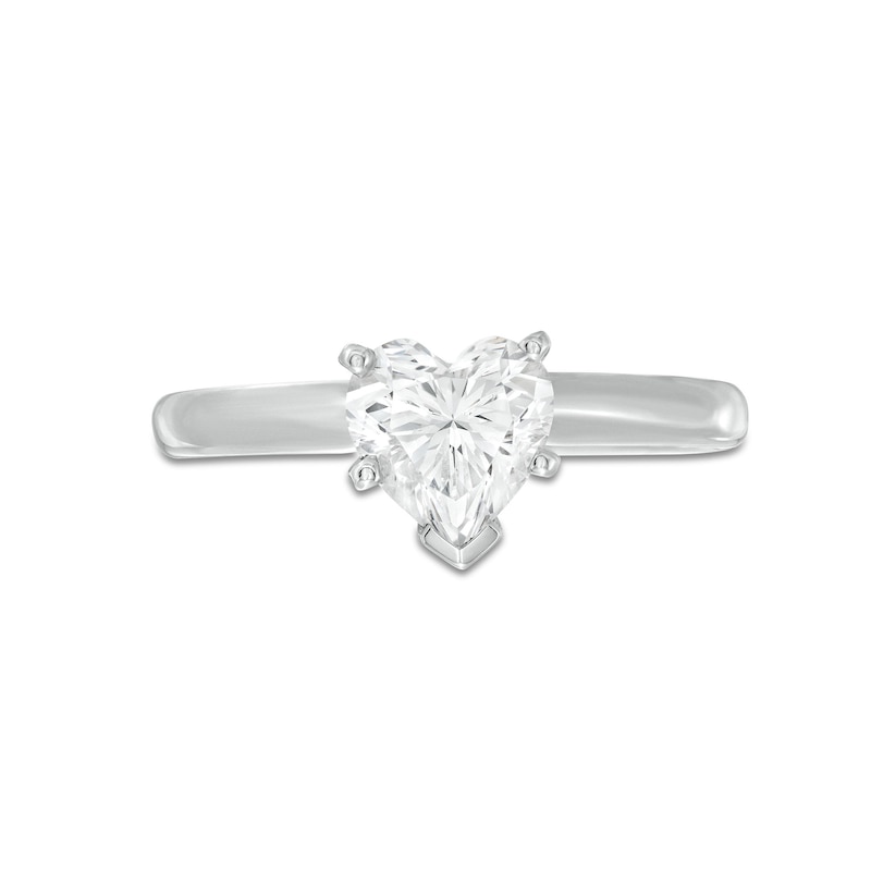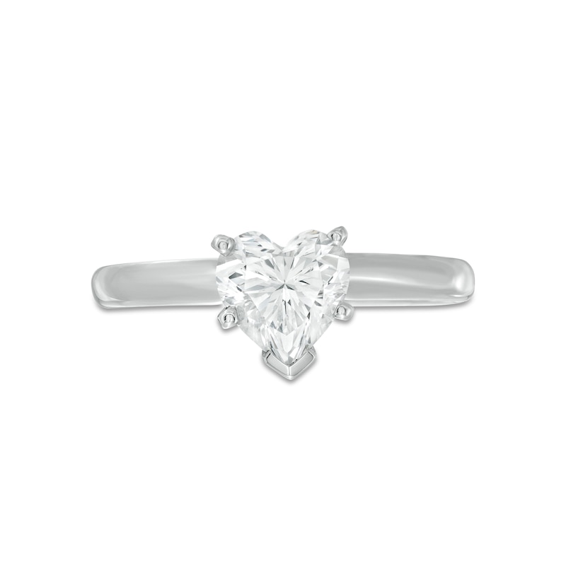 The fiery beauty of this 1 carat heart-shaped diamond symbolizes everlasting love. The diamond engagement ring features an elegant 14K white gold band.