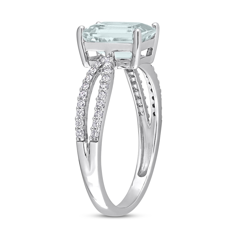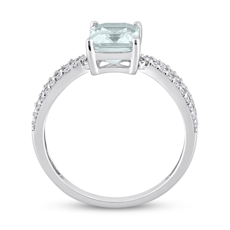 - Emerald-cut Aquamarine Engagement Ring 1/5 ct tw Diamonds White Gold Plated
