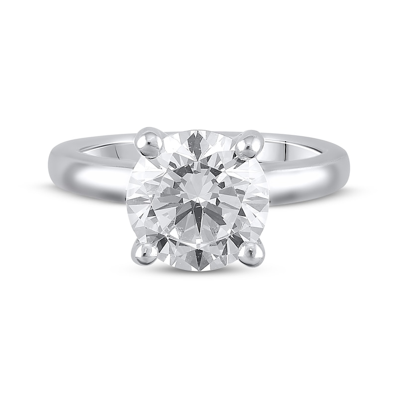 Get the answer you're looking for with this magnificent lab-created diamond solitaire engagement ring. This sparkling gift features a round-cut lab-created diamond centered atop a polished band in 14K white gold with a rhodium finish. The ring has an incredible total lab-created diamond weight of 4 carats and is independently certified. From the Lab-Created Diamonds by KAY collection.