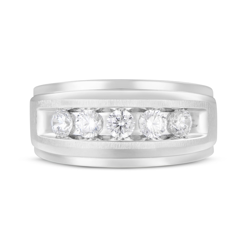 - Men's Diamond Five-Stone Brushed Wedding Band 1 ct tw White Gold Plated