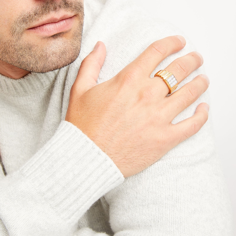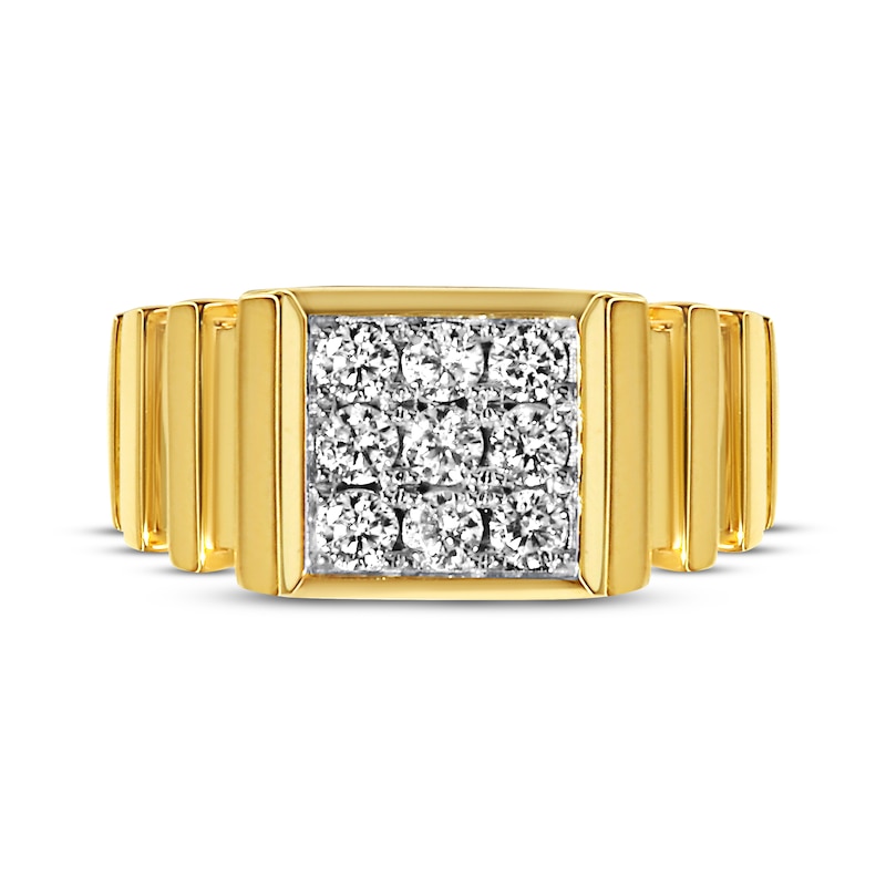 - Men's Multi-Diamond Center Textured Wedding Band 3/4 ct tw Round-cut Yellow Gold Plated