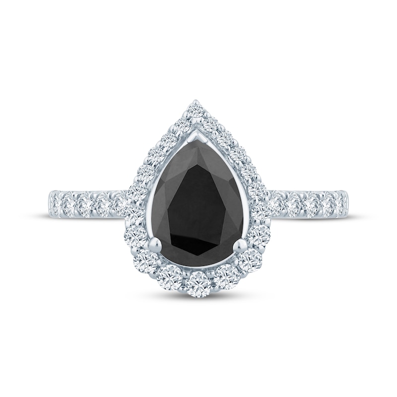 - Pear-Shaped Black Diamond & Round-Cut White Diamond Engagement Ring 1-1/2 ct tw White Gold Plated