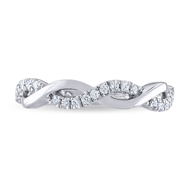 This THE LEO Diamond® wedding band is fashioned with sparkling round diamonds totaling 1/5 carat in weight, set in 14K white gold.