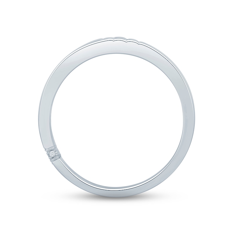A trio of shining bezel-set baguette-cut diamonds draw the eye to this shining anniversary band crafted in 18K white gold. A signature element of round diamonds encircles the band, symbolizing unity and eternal love. The ring has a total diamond weight of 1/4 carat, and the diamonds are independently certified. From the Monique Lhuillier Bliss collection, available exclusively at KAY. Please note: This ring is available in limited sizes. If you don't see your size here, please visit a store to order your ring.