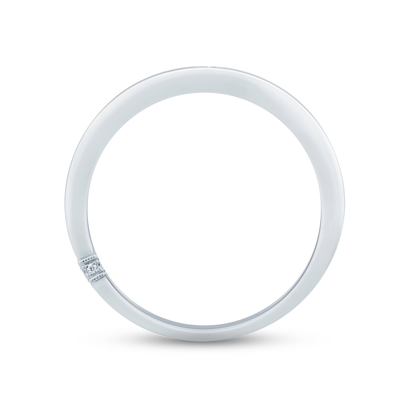A bezel-set oval-cut diamond shines at the center of this lovely anniversary band, which is styled in iconic 18K white gold. A signature element of round diamonds encircles the band, symbolizing unity and eternal love. The independently certified diamonds have a total diamond weight of 1/4 carat. From the Monique Lhuillier Bliss collection, available exclusively at KAY. Please note: This ring is available in limited sizes. If you don't see your size here, please visit a store to order your ring.