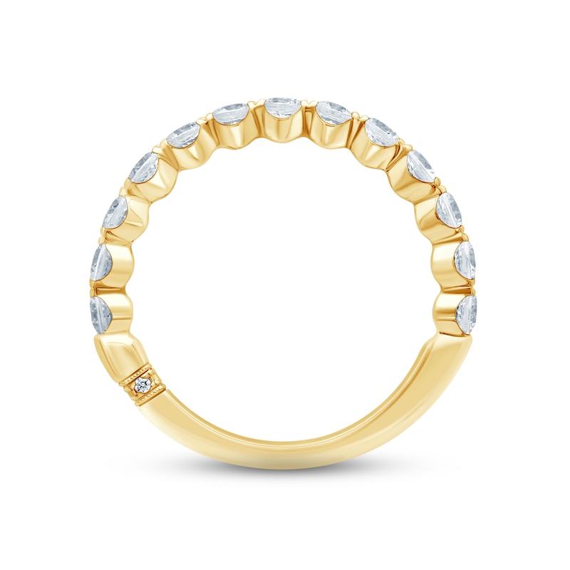 This sparkling anniversary band showcases a beautiful array of round-cut diamonds styled in 18K yellow gold. The ring has a total diamond weight of 1 carat, and the diamonds are independently certified. From the Monique Lhuillier Bliss collection, available exclusively at KAY. Please note: This ring is available in limited sizes. If you don't see your size here, please visit a store to order your ring.