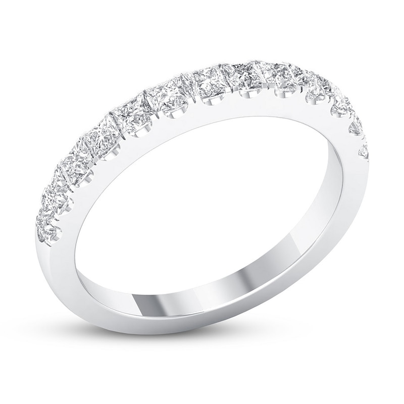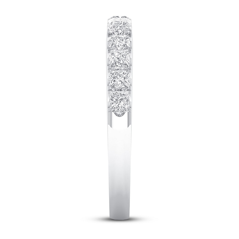 Independently certified princess-cut diamonds add brilliance to this amazing women's anniversary band. Fashioned in 14K white gold, the ring has a total diamond weight of 1 carat. From the Now & Forever® Bridal Collection.