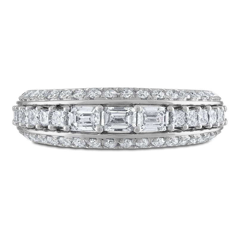 Of course, you'd do it all over again and this beautiful ring is perfect for celebrating your milestone moment. The brilliant band features a center array of emerald and princess-cut diamonds. Radiant round-cut diamonds form stunning edges to the sparkling silhouette. Fashioned in iconic 14K white gold, the ring has a total diamond weight of 1 carat.
