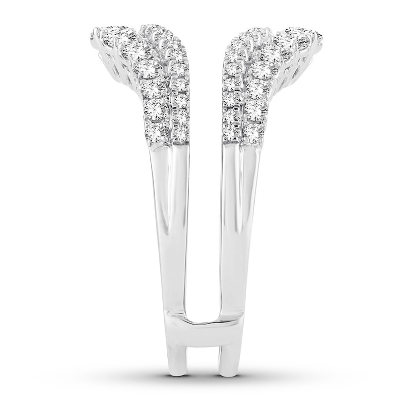 Brilliant round diamonds shine above and below a space for her solitaire engagement ring (sold separately) in this stunning enhancer ring for her. Styled in 14K white gold, the ring has a total diamond weight of 1 carat.
