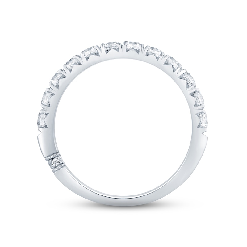Brilliant round-cut independently certified diamonds sparkle along this beautiful anniversary band crafted in 18K white gold. The ring has a total diamond weight of 1 carat. From the Monique Lhuillier Bliss collection, available exclusively at KAY. Please note: This ring is available in limited sizes. If you don't see your size here, please visit a store to order your ring.